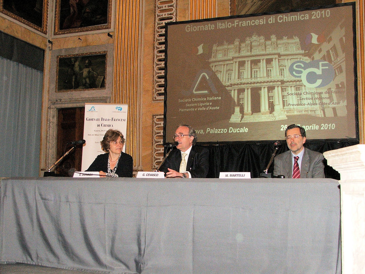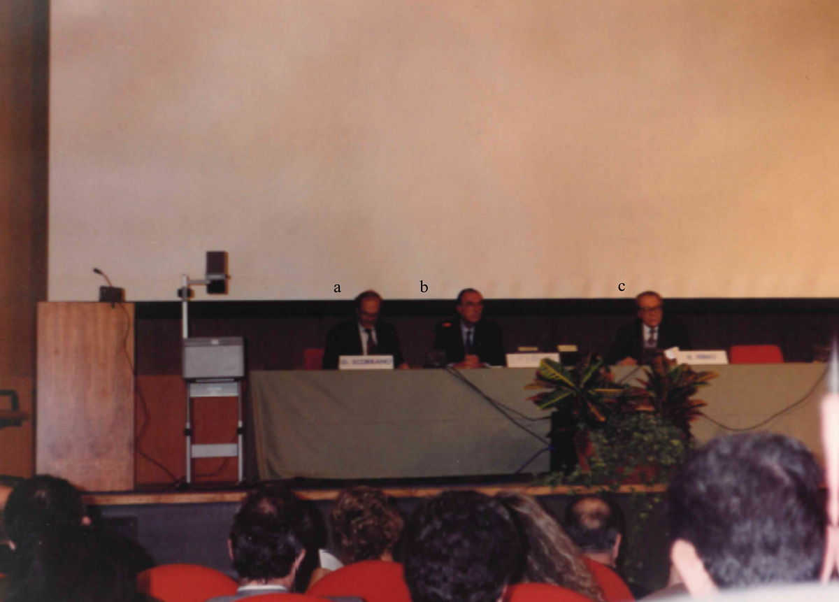 aProf. G.F. Scorrano (Presidente SCI), bProf. S. Pontremoli (Rettore UniGe), cProf. R. Ferro (Presidente della Sezione Liguria della SCI)