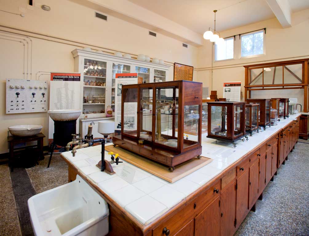 Nel suo insieme questa collezione testimonia la trasformazione che le scienze chimiche anno subito negli ultimi due secoli, passando dalle apparecchiature più semplici, ereditate dalla pratica alchemica (storte, mortai, imbuti, fiasche, forni a carbone...), a quelle più propriamente chimiche (apparecchi di Kipp, bilance analitiche), fino agli apparati usati per trattare grandi quantità di minerali, allo scopo di separare e caratterizzare composti di metalli rari come lantanio, cerio ed altri.
